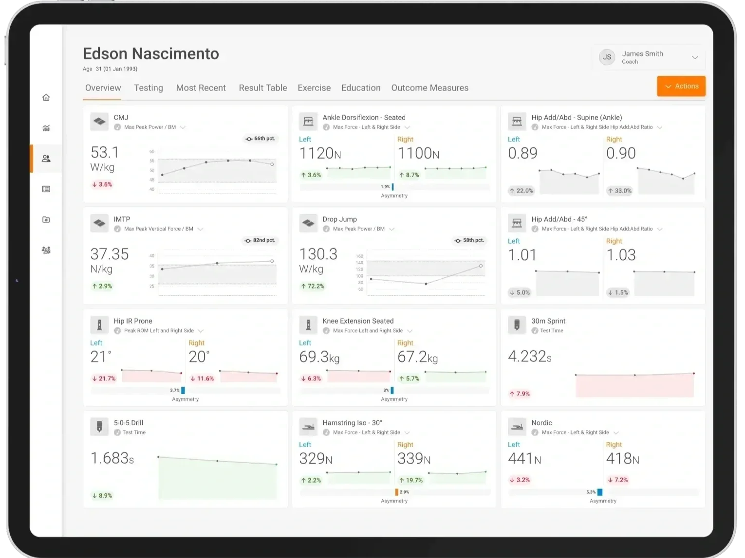With a VALD technology assessment battery, measure all these traits and more, then monitor them on a single dashboard.